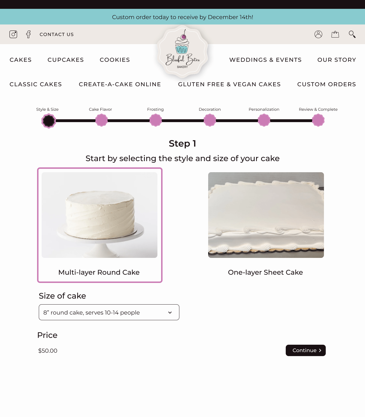 I'd like to explore online ordering features that a user could use to customize a bakery order because they are wanting to purchase a bakery product that is personal and unique.