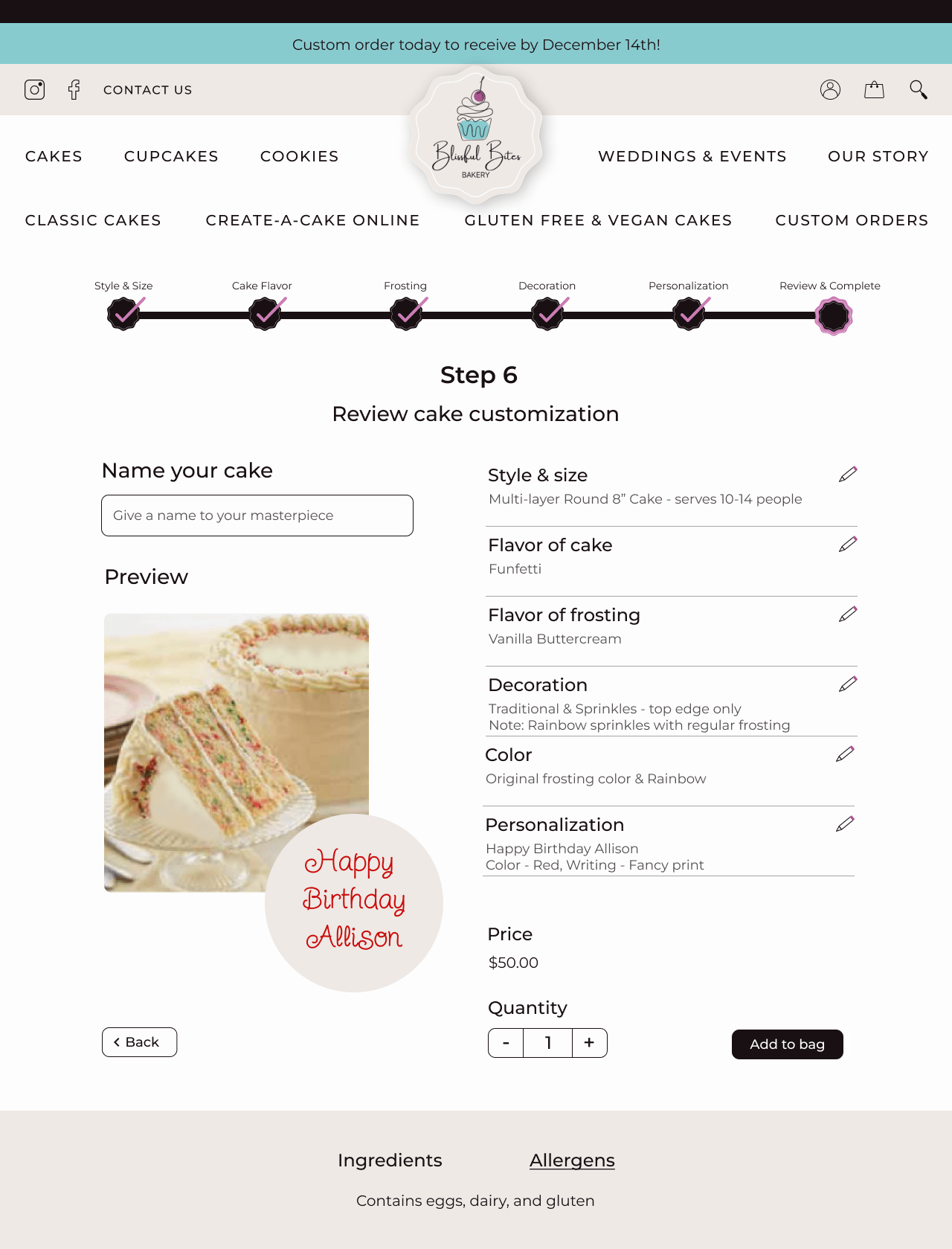 Participants would like to be able to make the bakery item their own and customize the details. Choosing flavors, frostings, personalization to make it special for the occasion.