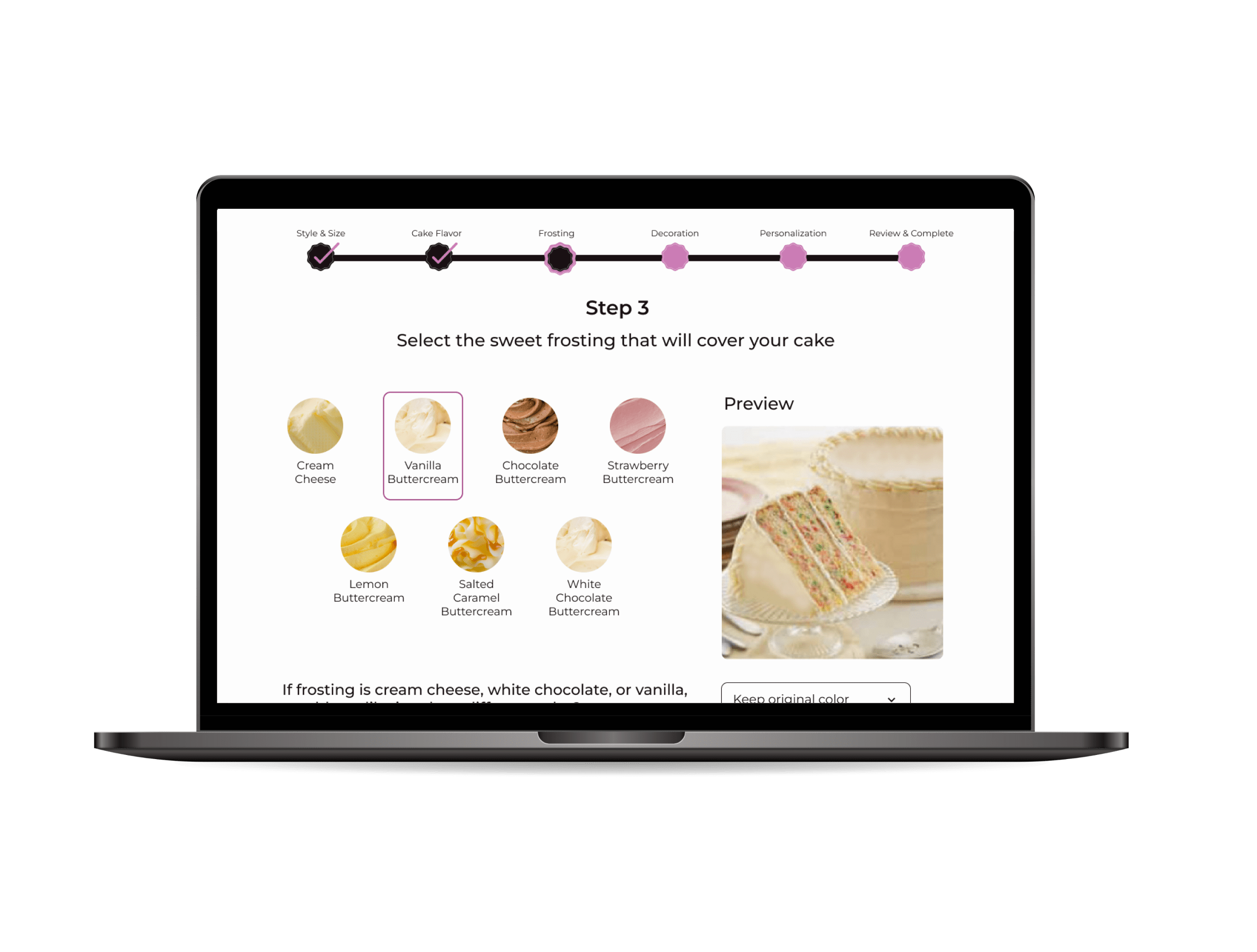 - help bakery customers order efficiently online, being able to customize their baked goods and see a preview of what it could look like?